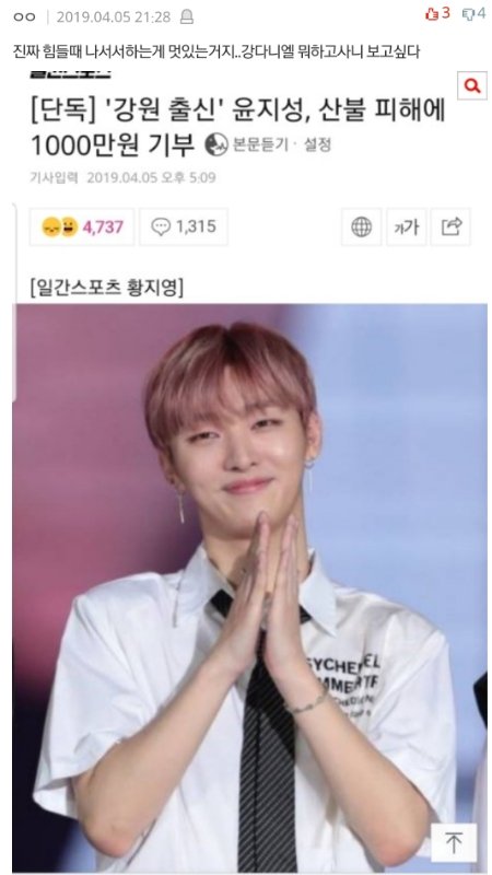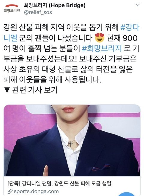 +) 강다니엘팬들 속초 피해 기부릴레이 글.... 톡선 올라간지 몇시간도 안됐는데 톡선에서 사라졌... 저번에 소속사 분쟁관련 정리글도 톡선에서 사라져서 팬이 다시 올렸었는데... 하....