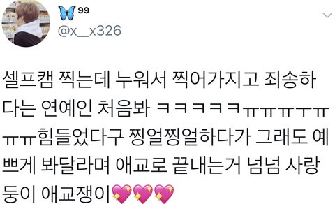 누워서 찍어가지고 죄송하다 사과까지 하는 얼굴도 마음도 착한 새럼 시우민 당신은 정말