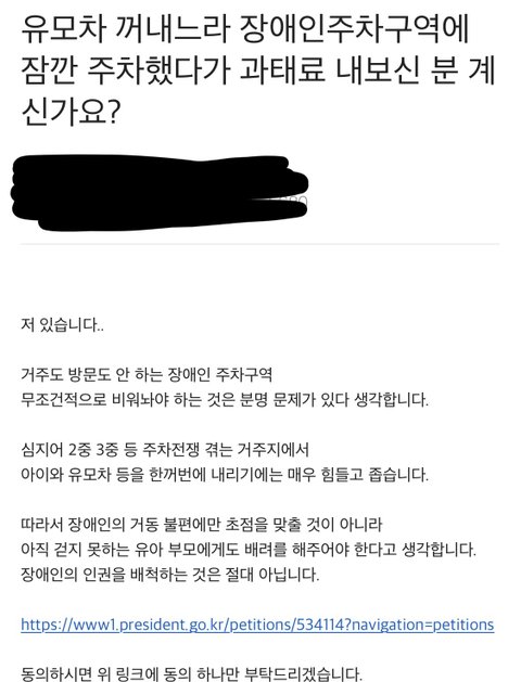 이 글 말고도 맘카페에 장애인 주차구역에 주차하고
