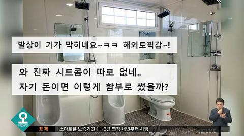 ㅋㅋㅋㅋㅋㅋㅋㅋㅋㅋ 아 대박. 소변 누고 있는데 누가 옆에서 샤워하면 어쩔