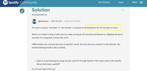 30초스밍으로 스밍 1회 카운트 된다는 건 우선 말도 안 되는 소리인 게, 스포티파이에선 무슨 곡이든 30초를 초과하여 들어야 스밍 카운트가 됨.