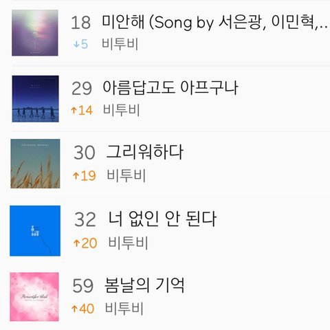 톡선에서 발견했는데 은광님 작년 여름에 입대하신거 같은데 차트보소...ㄷㄷ.. 보통 남돌들 군대간다고하면 소식 뜸해지면서 뭔가 곧 은퇴하는거 같고 뭔가 심숭생숭한?? 그런 기분인데 비투비는 계속 소식이 들려와서 그런가?? 잠시 내려놓는 기간이라는 군백기가 군백기가 아닌거 같은..ㅋㅋㅋㅋ 부럽ㅠㅠ 나중에 내 본진 군대 갔을 때도이런 분위기였으면 싶고ㅠㅠ 큐브가 군백기 잘챙겨주는 편인가??? 주위에 멜로디들 보니깐 똘똘 뭉치는거 같고..