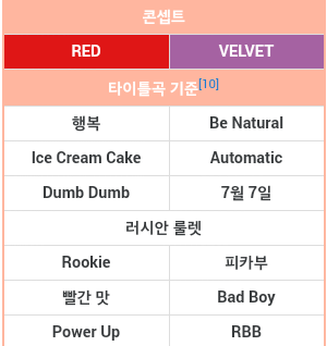 마지막 RBB활동이 벨벳컨셉으로 했기때문에 이제 레드컨셉이겠지만 난 레벨곡중에 이두곡을 제일좋아해서 뭘해도 좋을듯 ㅜㅜㅜㅜㅜㅜ기다려진다