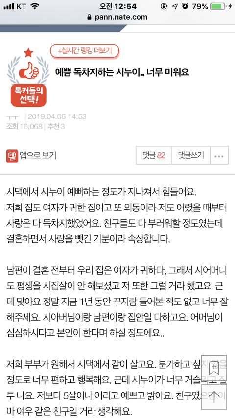[원본지킴이] 예쁨 독차지하는 시누이.. 너무 미워요