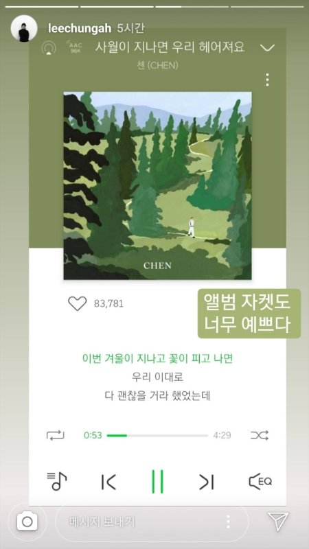 배우 ㅇl청ㅇr님 인별스토리 종대곡