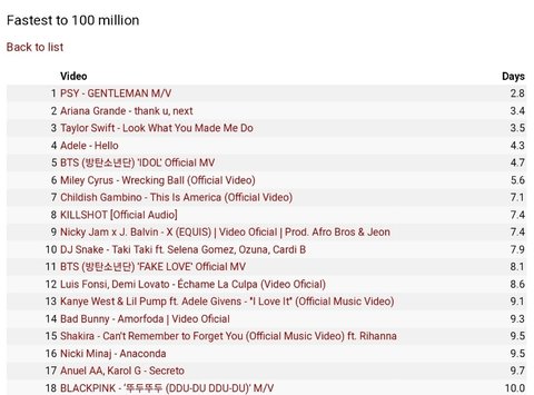 블랙핑크 세계 최단 1억뷰