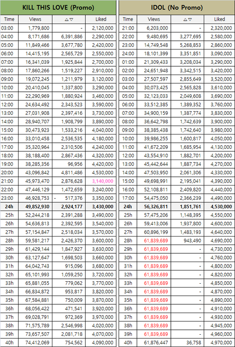 유튜브가 작년 방탄 IDOL때 갑자기 12시간동안 완전 정지시켜서 조회수가 1도 안오름 (프로모안한 타남그룹도 8시간 스톱했다 함)