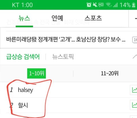 할/시님 실검 1,2위