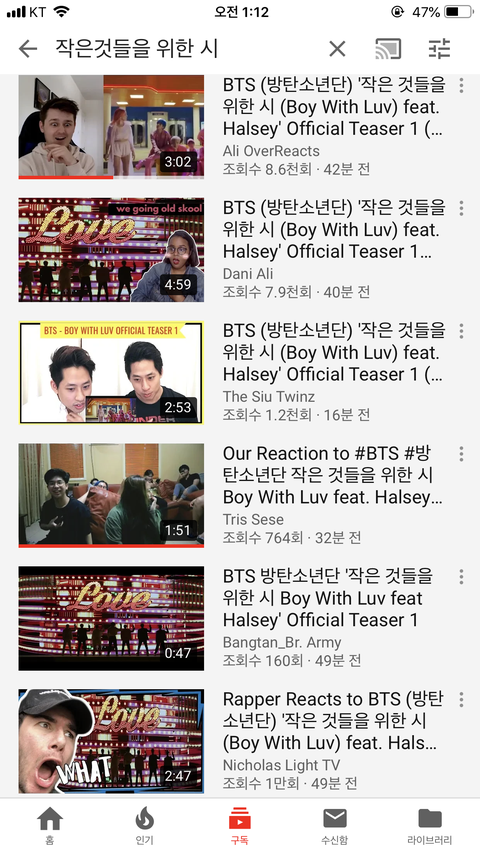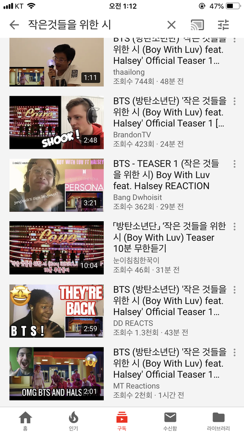 티저뜬지 1시간채 됐는데 리액션 한 30개 올라온듯 그것도 다 외국인 ㄷ ㄷ ㄷ 진짜 인기 실감난다,,