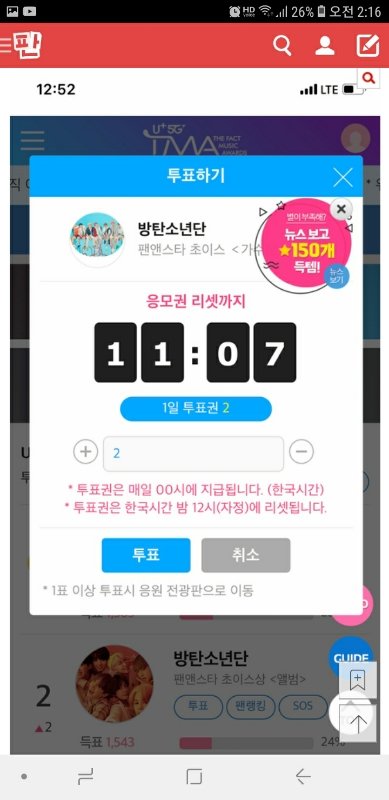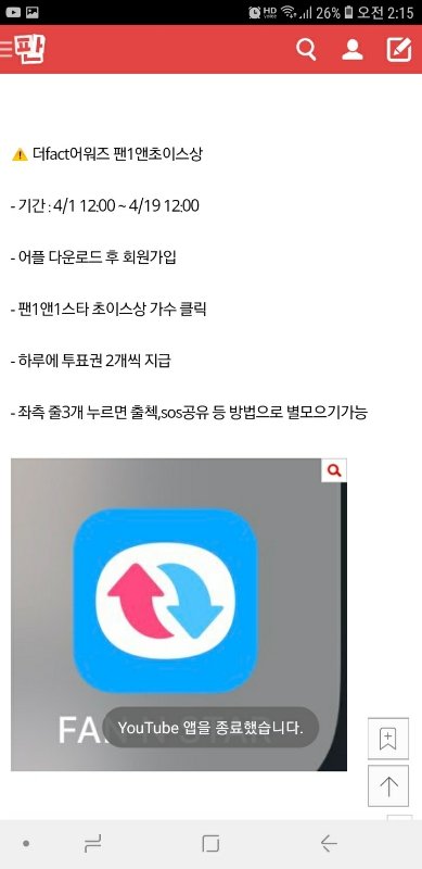 팩ㅌ 투표는 팬앤별툽이랑 같은거야!! 더팩ㅌ어워즈 팬앤별초2스 가수상임
