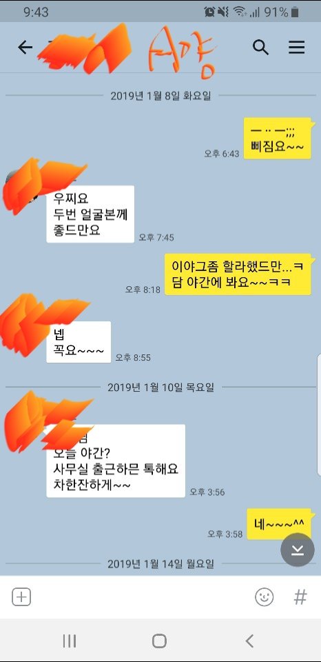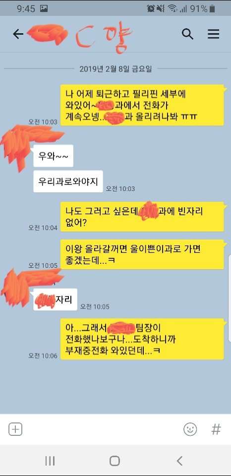 B양은 제업무 보조입니다..발령받은후 한달가량 제가 업무 갈켜서 한달 후엔 저보다 더잘해서 믿고 제가 다른일을 할수있게끔 알아서 잘해주었지요.저는 업무가 두가지를 맡고있었습니다..보통 1인 1업무인데 유독 저만 1인2업무를 맡고있었죠..아무튼 한가지일을 덜게해준 고마운애 였습니다..직장에 여자는 3%도 안되고 더구나 20대여자는 찾기가 극히드물어 사무실에서 이쁜이로 불렸네요..별명처럼 불렸기에, 또한 저한텐 고마운애 였기에, 제가 델구있다가 인사발령으로 다른데로 보내기에 카톡에 이쁜이라 한번 불렀습니다..공교롭게도 저랑 B양 인사발령 내려온 날이 세부에 있을때 였구요..인사발령 내용 알려준다고 한 카톡이었습니다..그이후론 카톡이내 다른 연락 업구요. 어쩌다 전체 회의때나 우연히 보고 안부정도 묻는거 외엔 다른거없구요..28살 깨소금 쏟아지는 새댁이 흰머리에 주름살늘어진 45살 아저씨랑 썸이있다는게 가당키나한건가요? 어이없어서 헛웃음만 나네요