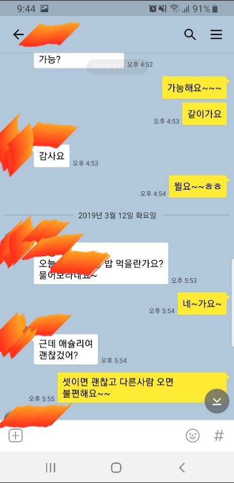 구내식당에 내년에 환갑이고 형편이 많이 안좋은 식당이모님이 있었습니다...헌데 고용주 측에서 이모님이 조리사자격이 없다는 핑계로 하루아침에 해고를 시켜버렸습니다~저한테는 반찬도 잘챙겨주시고 살가운 이모님이셨는데 갑자기 짤리시고 한탄스러워하시길래 그동안의 정도있고해서 이모님한테 그동안 수고하셨다 저녁식사한끼 대접하겠다 하고 저녁식사 자리를 만들었습니다.허나 이모님이랑 단둘이 먹기는 좀 부담스러워서 이모님이 친한 여직원과 이모님 친구를 불러서 같이 밥먹은 상황입니다..한달여쯤후 이모님(59살)과 이모님 친한 여직원(51살)이 밥사준거 고맙다.다른식당 취직했고 답례하겠다 해서 다시한번 저녁식사자리에 가서 밥 먹는 상황입니다..여직원이랑같이 제차로 간건 제가 술을 먹지 않기에, 옆사무실에 근무하기에 제차로 가자고 하는 톡 내용입니다..밥 먹은 이후론 어떠한 톡이나 연락없구요