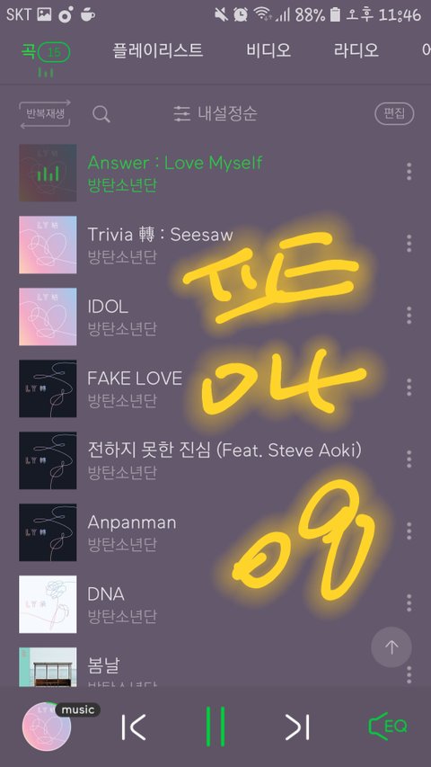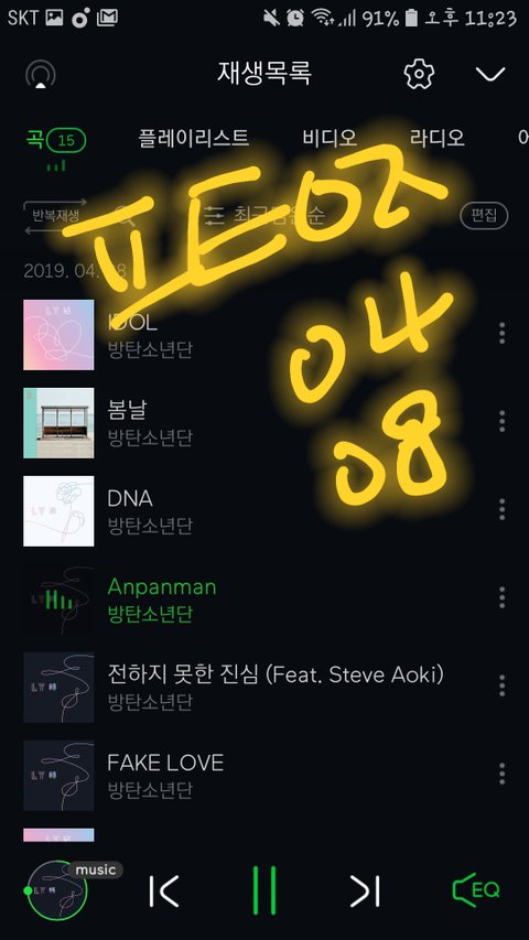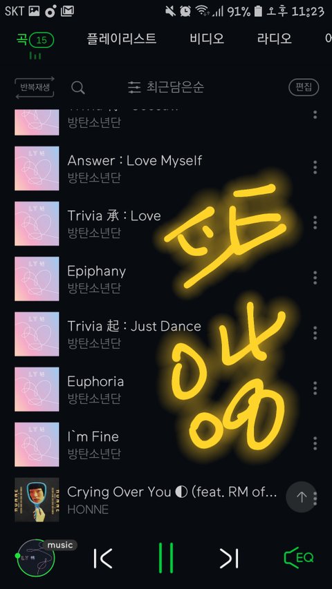 나 내맘대로 듣고 싶은 탄이 노래 듣다 각 잡고 스밍돌리려는데 왜 때문에 이렇게 됐는지..