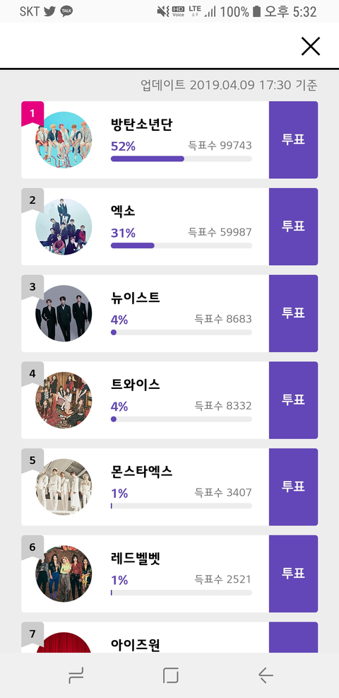 탑투 팬덤인줄 알았는데 엑소엘들은 투표 안하는건지