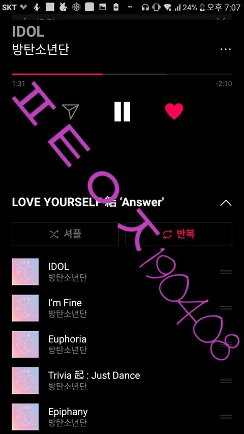 리스트는 어제 만들었는데 아이dol 추가를 못해서 고민하다 2시간동안 어찌어찌했어 다시하라면 곰곰이 생각해봐야할것 같아ㅜㅋㅋ 하트누르고 반복했어