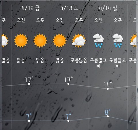 일요일 한양 비온다는 소식이