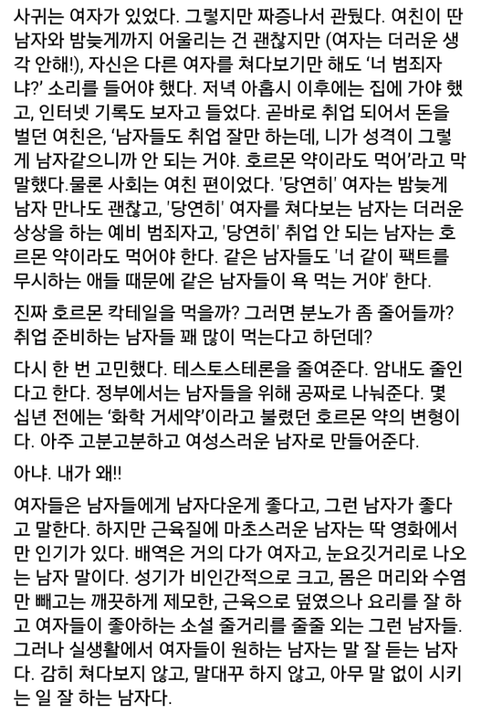 진짜 진심으로 궁금해서 묻는건데 한남들 한녀 엄청 싫어하잖아 그리고 결혼한다고 하면 취집 설거지 퐁퐁 온갖 얘기 다 나오고 전업해도 ...