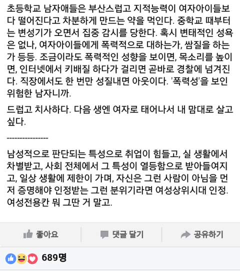 아 ㅅㅂ 댓글읽다 속안좋아짐 중년 남미새는 ㄹㅇ 심연인듯 아들낳을땐 뇌도 같이 낳는다는 말이 이런거구나