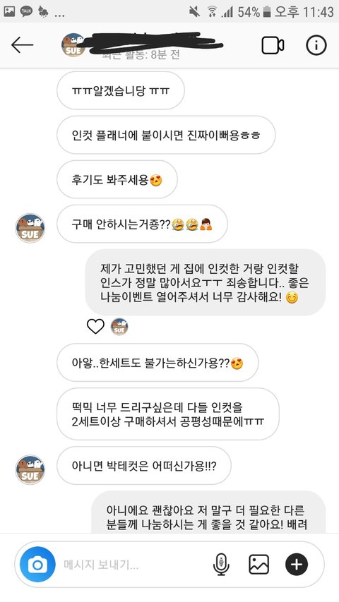 4. 판매자 님께는 특별히 1세트만 구매해도 된다면서 비밀로 하라는 걸 보아하니, 연락오는 모든 이들에게 비밀이라고 1세트만 사도 된다고 얘기하고 다니는 모양ㅋㅋ