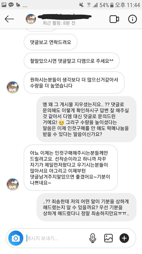 7. 순간 ㅈㄴ 짜증나고 장사꾼 수법이 너무 보여서 일부러 오늘 다시 올라온 그 글 덧글에 '전에는 연락이 너무 많이 와서 인컷 구매해야 나눔받을 수 있다고 하시지 않으셨나요..?' 라고 덧글을 달았음ㅎㅅㅎ