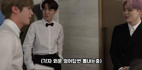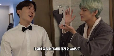 인터뷰 연습도 해보고 그러는 와중에 뷔 얼굴 미쳤고