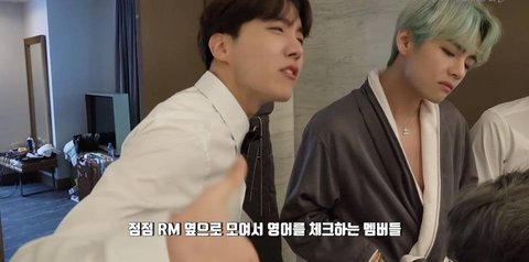 혼자 알엠 옆에서 1:1 영어 강습 받는 지민