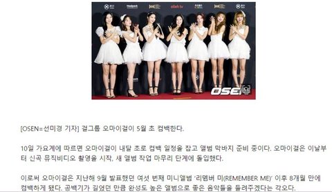 오마이걸, 8개월 만에 5월 초 컴백 확정.."오늘 MV 촬영"