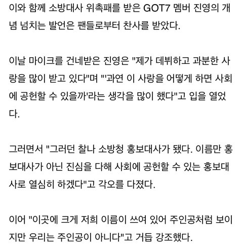 작년에 갓세븐이 소방청 홍보대사로 위촉됐어.