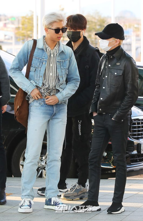 낮누 청청패션 진짜 와 뫄들임 김남준이라서 소화 미늉 지금 가죽재킷이여????????? 워 진짜 오랜만에봄 볼캡에 가죽이라고... 근데 중간에 저 애기는 신발 와따시만해 똨ㅋㅋㅋㅋㅋㅋ