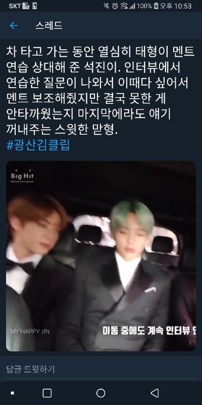 https://twitter.com/MyHappyJin/status/1115868733350842369?s=09 링크임 꼭봐봐