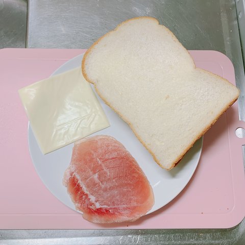 재료 : 식빵, 슬라이스 치즈, 프로슈토 햄, 풀떼기
