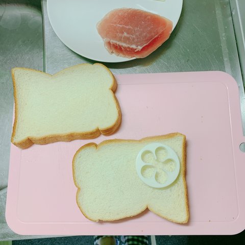 햄의 갯 수에 맞춰 빵을 찍어낸 다음(원하는 크기, 모양 무방)
