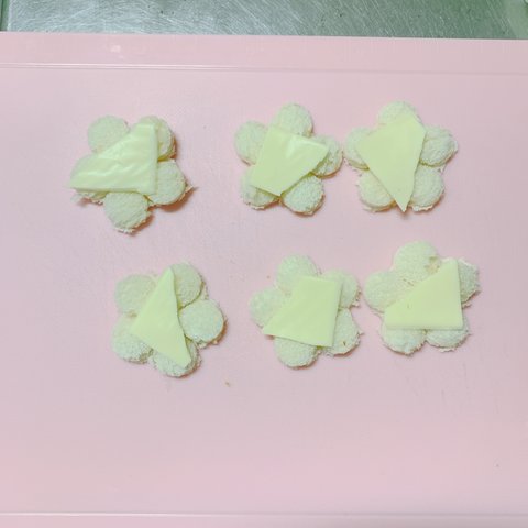 잘못해서 망가진 치즈를 대략 크기로 빵위에 올린다.