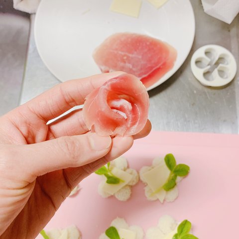 프로슈토 햄은 어차피 내가 먹을 거니 대충 꼬깃꼬깃 주물딱해서 꽃비스무리