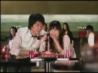 둘이 꽁냥꽁냥 대면서 서로 빵 먹여주고