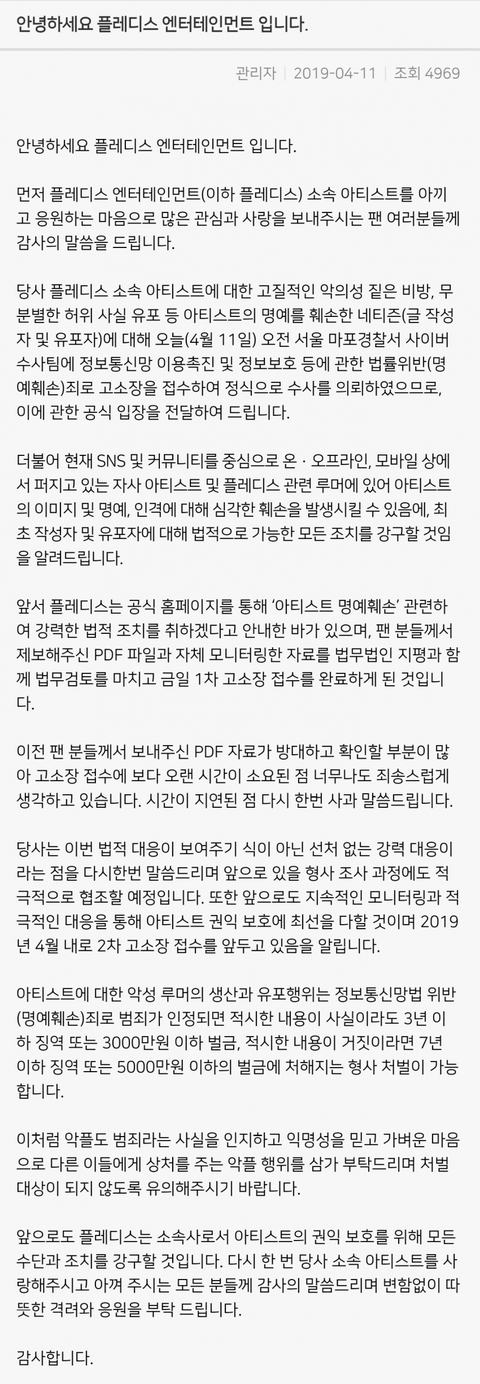 플레디스 고소 1차 접수(2차 접수 예정)