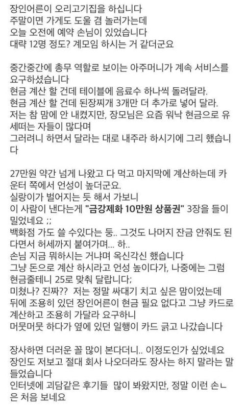 저희는 현금으로 유세떨면 저희는 세금신고 정확히 하기때문에 현금으로 얻는 이득이 없다고 말합니다. 실제로도 그렇고요. 진상들도 진상떨며 살아온 노하우가 있는지 씨알도 안먹힐거 같으면 안하더라고요.