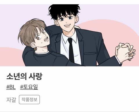 제목은 “소년의 사랑” 이고 현재 5화까지 나와있는 따끈신작임 나도 아직 2화까지 밖에 못 봤고 보기로는 친구사이 였다가 연인으로 발전하는 적당한 클리셰에 학원물 인 듯함