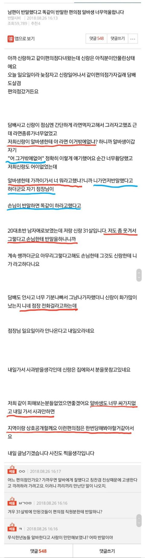 편의점 알바가 반말해서 열받은 부부