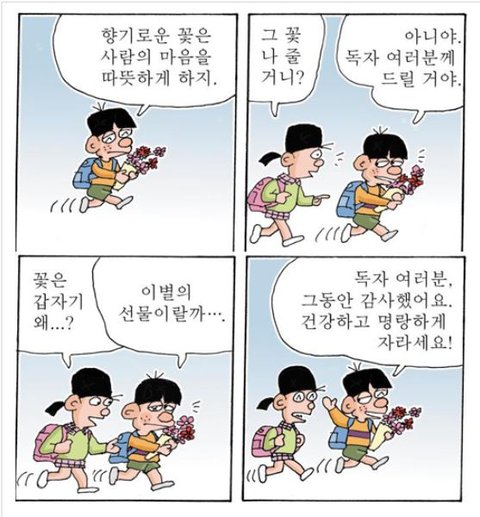 나 서른다섯살인데... 나 어릴때도 보던만화... ㅠㅠ 학교에서 보던 어린이 신문에서도 나왔고 책도 있었어.. 건강악화라니 마음이 아프다 ㅠㅠㅠㅠ 39년생이시면 우리 할머니랑 비슷하시네.. 정말 연세가 많으신데도 여태까지 아이들 위해서 계속 만화 그려주셨구나.. 마지막 인사도 독자 여러분 건강하게 자라세요 라니.. 뚱딴지 보던 초딩 이제 잘 커서 멋진 사회인 됐어요. ㅠ 작가님도 건강하세요..