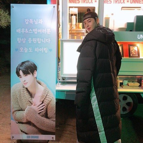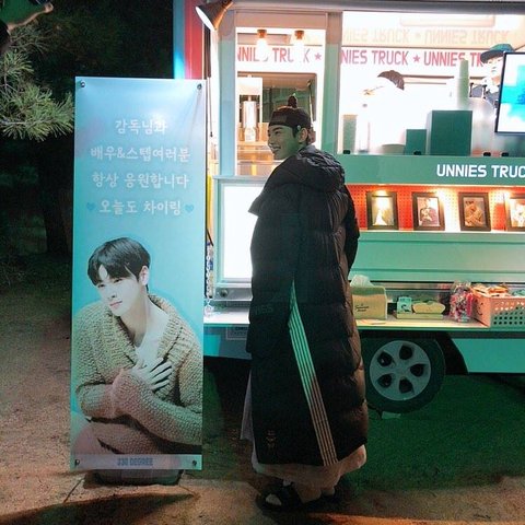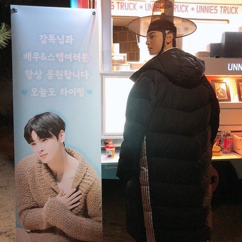 팬들이 보내준 간식차 사진 인증샷 올라온건데 갓... 갓 쓰고 있어ㅠㅠㅠㅠㅠㅠㅠ