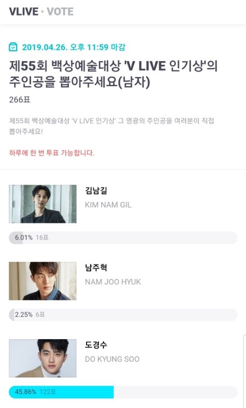 뱩상 인기상 경수 후보다 투표하자