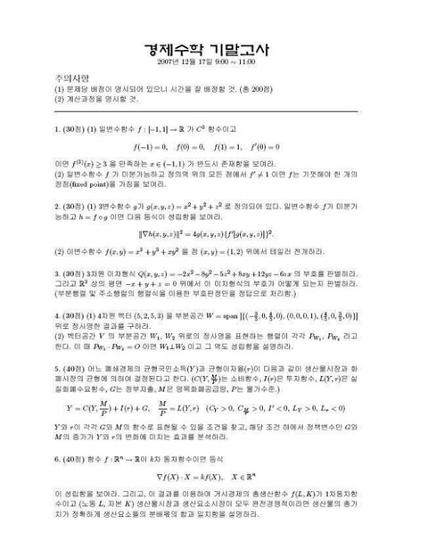 서울대 경제학과 기말고사 문제 ㄷㄷ