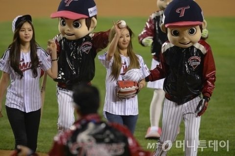 에이핑크는 LG트윈스 홍보대사로 활동하며 여러차례 시구를 한바 있다.