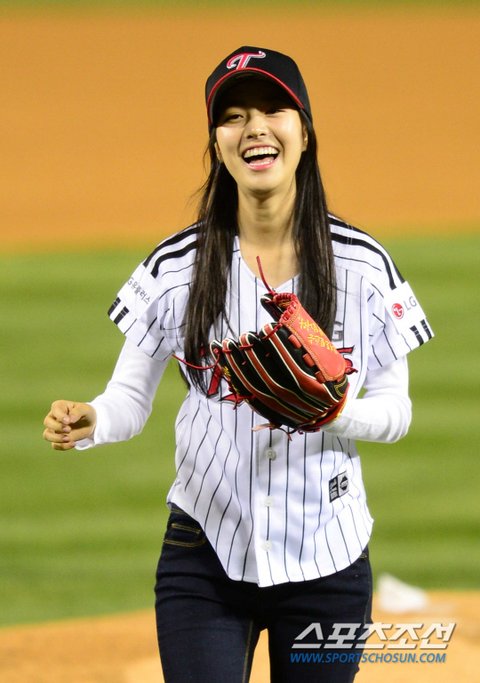 청순한 미모를 자랑하는 배우 진세연 역시 LG트윈스의 광팬으로 여러차례 시구한바 있다.