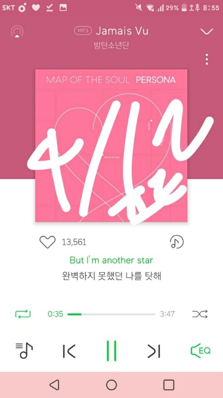 화양연화 느낌 나냐... 특히 뮤비 마지막 부분 사진 속 짤들 부분!!! 화양연화 느낌은 느낌인데 확실히 럽욜셆 시리즈를 거치고 성장하면서 밝아진 느낌? 화연의 긍정적 버전 같아 ㅠㅠㅠㅠㅠ 수록곡 전체적인 느낌도 화양연화 짜꾸 생각 나.... 소우주랑 홈이랑 자메이뷰 등등 너무 아련