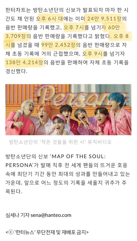발매한지 2시간 만에 99만장.....3시간만에 138만장(이상)........