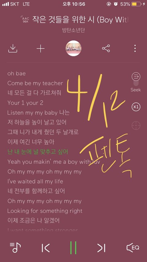 이와중에 아미 생각만 하며 쓴듯한 가사