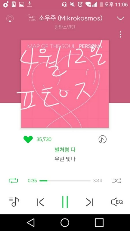 되고 있는 거 맞아??ㅠㅠ 권장 리스트대로 재생목록에 다 담고 반복재생 눌러놓고 하트도 하나씩 누르고 있어!!! 스밍 첨이라 떨린다 후,,, ㅜ 쓸데없는 질문 해서 미안해ㅠㅡㅠ