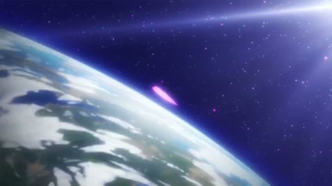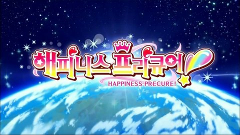 해피니스 프리큐어에서 나오는 우주에서 본 지구의 대기권 파란색을 띠는 지구가 예뻐보입니다